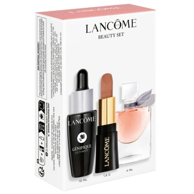 Följ med på en extraordinär resa från Paris till Lykke, vår varumärkesdestination sedan 1935, och fira 90 års magi i jul. Lancôme presenterar en speciell presentkollektion designad av den franska konstnären Safia Ouares i den ikoniska Lancôme-rosa färgen. När klockan slår midnatt börjar Lancôme Express sin legendariska resa à la française och bär med sig den festliga andan mot ett förtrollande landskap: en festival av gåvor i ett magiskt sagoland som firar årets mest oförglömliga resa. Varje ask avslöjar en skönhetsjuvel som får dig att stråla under hela den här festliga säsongen. Detta presentset innehåller:
