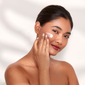 Ta en klick stor som en ärta och applicera med fingertopparna över ansiktet, halsen och dekolletaget med uppåtgående, cirklande rörelser, så att produkten masseras in i huden.