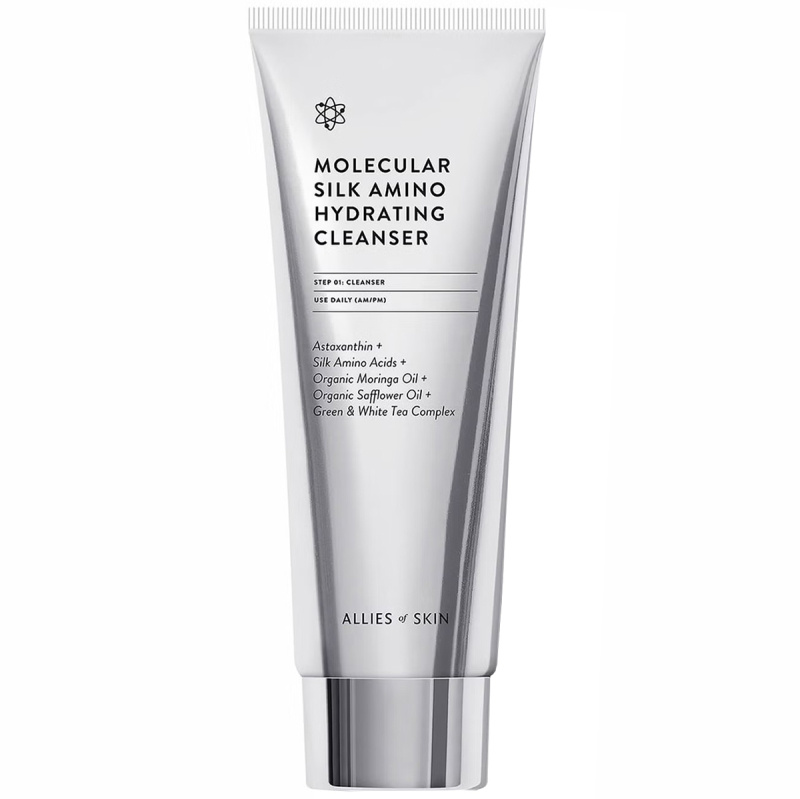 Upptäck Allies of Skins flerfaldigt prisbelönta formula, berikad med silkeaminosyror, C-vitamin, ekologisk safflorolja, ekologisk moringaolja, extrakt från grönt och vitt te samt astaxantin för effektiv rengöring och mjukare, fräschare hud. Formulerad för alla hudtyper, särskilt mycket torr och känslig hud.