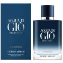 Acqua di Giò Profondo är skapad av parfymören Alberto Morillas och passar perfekt till den symboliska matta glasflaskan som med sin eleganta, nästan ogenomskinliga mörkblå färg återspeglar havets oändliga djup. Alla storlekar kan fyllas på. Refillflaskan säljs separat.