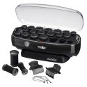 - Värmespolar med hög prestanda som skapar långvariga voluminösa lockar och vågor. Mjuka sammetsklädda spolar med keramisk beläggning distribuerar skonsamt värmen i håret och säkerställer mjuka lockar med långvaraktig effekt.
