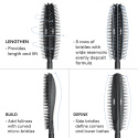 1) Placera borsten horisontellt, direkt under fransarna så nära roten som möjligt, lyft upp och ut - inget behov av att zick zacka. Applicera så många lager som önskas för att ge fransarna fantastisk längd och lyft. 2) Borstens baksida kan användas för att addera fyllighet. Fokusera på de mittersta fransarna. 3) Använd sidoborstarna för att definiera och för de undre fransarna. 1. LÄNGD: Placera borsten horisontellt, direkt under fransarna så nära roten som möjligt, lyft upp och ut - du behöver inte vicka. Applicera så många lager som du vill för att ge fransarna en fantastisk längd och lyft. 2. BYGG: Borstens baksida kan användas för att bygga fyllighet. Fokusera på de mellersta fransarna för en vidögd effekt. 3. DEFINERA: Använd sidborsten för att definiera ögonvårn och de nedre fransar.