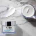 Öppna burken. I motsats till en traditionell burk behöver membranet inte tas bort. Vid applicering, tryck och skjut mot den blå droppen (på samma sätt du öppnar en mobiltelefon). Ett tryck på det mjuka membranet ger en exakt mängd för hela ansiktet. BIOTHERM, 14 rue Royale 75008 Paris, [email protected]