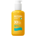 Vår första Svanenmärkta solcreme som är utvecklad för den medvetne konsumenten som vill skydda sin hud med respekt för växtplankton och havsmiljö.Vad är det som gör produkten så speciell? Vi älskar vatten, och därför vill vi ta hand om våra hav och påverka livet i haven så lite som möjligt. Det nordiska Svanenmärket har certifierat vår solcreme efter en analys av hela produktens livscykel – ända från råmaterial till produktion, användning, avyttring och återvinning. Därför är vår Waterlover Sun Milk framtagen av en 97% biologiskt nedbrytbar basformula* samt miljötestade solfilter så att den har en så liten negativ inverkan på vår planet som möjligt. Vi använder oss även av cirkulär ekonomi – flaskan till vår solprodukt är nämligen tillverkad av 100 % återvunnen plast och är 100 % återanvändbar. Alla ingredienser, även solfiltren, är noggrant utvalda för deras miljömässiga profil, och vi har testat dem på vår Ocean 5-plattform för att säkerställa att de inte har någon negativ påverkan på vattenlevande organismer (sju mikroorganismer i både färsk- och saltvatten, bland annat växtplankton, koraller och mikroalger).Biotherm Waterlover Sun Milk SPF30 har en mjuk och behaglig formula som är lätt att applicera och absorberas snabbt utan att lämna några vita märken på huden. Vår biologiskt nedbrytbara solcreme är vattenfast och passar för känslig hud.Vi vill både bevara haven och ge konsumenternas en härlig upplevelse av produkten. Produkten har godkänts av konsumenterna som har beskrivit vår Svanenmärkta solcreme på följande sätt:- 9 av 10 anser att doften är behaglig.**- 9 av 10 upplever att deras hud får mer fukt och näring.**- 9 av 10 ser inga vita märken på huden efter applicering.**- 10 av 10 anser att produkten är enkel att applicera.***77 % biologiskt nedbrytbar produkt med filter.**Självutvärdering med 50 kvinnor och män i åldern 19–64 år. *OBS! På bilden visas produktens nya förpackning. Biotherms produkter genomgår för närvarande förpackningsändringar, och därför kan det under en period variera vilken produktförpackning du får levererat vid köp.