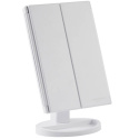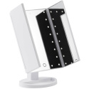 Denna ihopfällbara spegel består av tre speglar som ger en perfekt panoramisk översikt över ditt ansikte. 21 stycken ljusa, mjuka och justerbara LED-lampor ger en perfekt återspegling av färg och optimalt ljus för att applicera smink eller arbeta med ditt brow game. Ljusstyrkan kan justeras utefter egen smak utifrån vilket ljust som krävs för respektive tillfälle genom en touch-knapp på spegeln skärm. Tryck på touch-knappen för att slå på/ stänga av ljuset och håll in knappen i minst två sekunder för att justera ljuset. Spegeln kan enkelt justeras för att ge översikt ur bästa möjliga vinkel. Denna spegel innehar tre stycken ihopfällbara speglar som ger dig ett flertal olika vinklar och en tredimensionell upplevelse medan den justerbara spegelfoten gör det möjligt att placera spegeln på plana ytor så att du enkelt kan arbeta med båda händerna. Lamporna drivs av en USB-kabel (inkluderad) eller 4 stycken AAA batterier (ej inkluderade). Batterierna kommer inte att konsumeras då spegeln är inkopplad via USB.