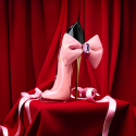 Flaskan är klädd i glödande rosa och prydd med en dramatisk rosett vid hälen, en design som fångar allas blickar. I mitten gnistrar en rosaskimrande sten, en detalj skapad för vinterns mest glamorösa föreställning.