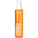 Glowing Sun Care Mist Very High Protection SPF50+ är en lätt, uppfriskande och vattenresistent solskyddsmist som skyddar huden mot UV-strålar och förtida ålderstecken. Den tvåfasiga formulan ska skakas före användning och ger huden en subtil glowfinish utan att kännas fet eller kladdig. Dess fräscha, lätta och vattenliknande textur gör appliceringen till en sensorisk upplevelse. Berikad med Solar Protect Complex, som kombinerar ekologiskt kakaoextrakt och ett E-vitaminderivat, erbjuder den mer än bara solskydd – den har anti-ageing och antioxidativa egenskaper samt motverkar pigmentering. Kakaoextraktet stärker hudens naturliga skyddsbarriär, medan E-vitaminderivatet bekämpar fria radikaler och förebygger förtida åldrande. Formulan återfuktar huden och framhäver din solbränna för en naturligt strålande lyster.