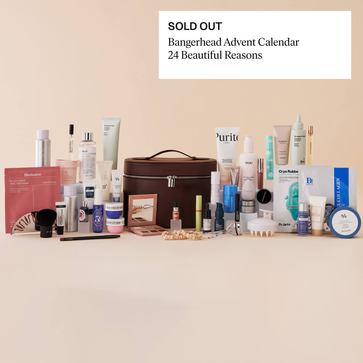 I varje påse väntar handplockade favoriter med ikoniska namn som Hourglass och Anastasia Beverly Hills till hyllade hudvårdsikoner som Dermalogica, Klairs och Dr. Jart+. Vissa luckor innehåller flera produkter som valts ut för att komplettera varandra och ge en rikare upplevelse.Totalt bjuder kalendern på hela 46 produkter samt en liten bonus, Revitalash Advanced Serum (0,75 ml) till ett värde av 399kr. Dessutom får de första som köper kalendern en By Bangerhead Snatched Face Sculptor värd 249 kr.