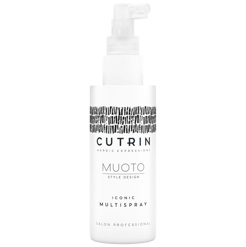 CUTRIN MUOTO IKONISK MULTISPRAY ger naturlig volym, fyllighet och glans. Används vid all slags styling, från naturliga vardagsfrisyrer till mer glamourösa stilar. Hjälper till att skydda håret mot externa påfrestningar. Björksocker återfuktar och bidrar till att stärka håret. Innehåller färgskydd. Storlek: 100ml