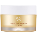Dr. Ceuracle Royal Vita Propolis 33 Cream innehåller Royal Jelly Extract (bidrottning gelé) vilket tillför huden naturligt kollagen som bygger upp hudens bindväv och ger spänst. Den honungslika formulan ger långvarig och djup återfuktning och näring till huden samtidigt som den stärker hudens fuktbarriär. Den perfekta energiboostern för trött och torr hud! Den innehåller 33% ren propolis som är naturligt reparerande och ger näring till tråkig och trött hud.