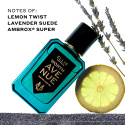 Topp: Kardemumma, rosa peppar, citronMitten: Lavendel-mocka-ackord, angelikafrö, pelargonBas: Cederträ, Ambrox Super, copaibabalsamHÖJDPUNKTER: