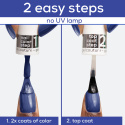 En gel-manikyr hemma med bara 2 enkla steg: 1) Lägg 2 lager gel couture extremt hållbart färgat nagellack. 2) Lägg 1 lager gel couture matte top coat för matt finish. UV-lampa behövs inte. Enkelt att ta bort precis som vanligt nagellack: användel nagellacksremover med eller utan aceton. Du behöver inte skrapa eller blötlägga naglarna.