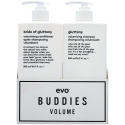 - Kit från Evo. Evo gluttony volumising shampoo (500 ml) är ett volymgivande schampo med lätt formula som rengör, ger fyllighet och stärker tunt och fint hår. Rekommenderas till alla hårtyper, särskilt fint och tunt hår. Evo bride of gluttony volumising conditioner (500 ml) är ett volymgivande och utredande balsam som ger fyllighet, styrka och glans till tunt och fint hår. Rekommenderas till alla hårtyper, särskilt tunt och fint hår.