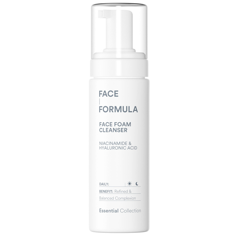 Face Formula Face Foam Cleanser är en skonsam rengöringsmousse som effektivt avlägsnar smuts, överflödig talg och orenheter samtidigt som hudens naturliga fukt bevaras. Den krämiga formulan rengör på djupet, utan att torka ut huden. Formulerad med milda sulfater och niacinamid för en ren, balanserad och mjuk hud.