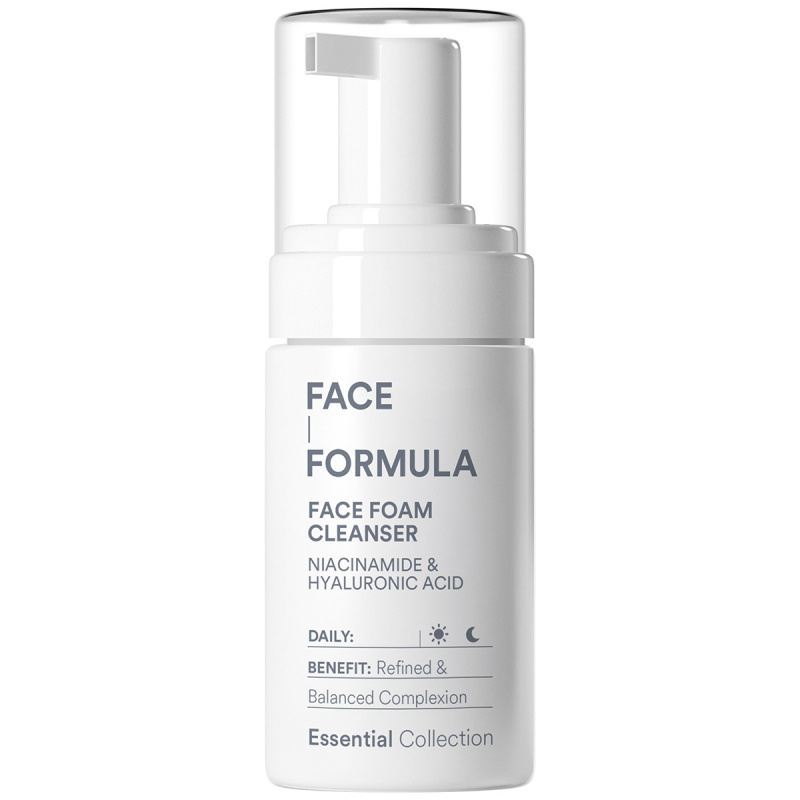 Face Formula Face Foam Cleanser är en skonsam rengöringsmousse som effektivt avlägsnar smuts, överflödig talg och orenheter samtidigt som hudens naturliga fukt bevaras. Den krämiga formulan rengör på djupet, utan att torka ut huden. Formulerad med milda sulfater och niacinamid för en ren, balanserad och mjuk hud.