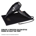 Få vackert hår på halva tiden* med ghd air® professionell hårfön. Den kraftfulla motorn på 2100 W** med professionell styrka och det patenterade avtagbara luftfiltret ger ett högt luftflöde för snabb torkning, medan avancerad jonteknik minskar frissighet och flygigt hår för att ge en slät salongsfinish på halva tiden*. Variabel effekt- och temperaturkontroll gör att du kan anpassa föningen efter din hårtyp, medan en cool shot-knapp hjälper till att fixera din styling. Den ergonomiska designen gör den bekväm att hålla i för både vänster- och högerhänta användare.