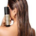 Steg 1: Applicera i vått hår – fjällskiktet är 50 % mer öppet när håret är vått, vilket gör att produkten kan tränga djupt in i håret och maximera sina fördelar istället för att bara lägga sig på ytan.