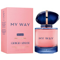 My Way Intense är en inbjudan till en inre resa, meningsfulla möten och förstärkta upplevelser. En blommande doft med beroendeframkallande tränoter och hållbart odlade ingredienser. Doften öppnar upp med skirt väldoftande noter av apelsinblomma från Egypten. En intensiv hjärtnot där tuberos från Indien avslöjar en krämig och sammetslen fasett av den blommiga signaturdoften. Basnoten av sandelträ från Nya Kaledonien ger en len och krämig twist när den möter sensuellt fyllig vanilj från Madagaskar. Den blå och guldskimrande korken symboliserar en talisman som fångar alla upplevelser. Intensiteten i dessa ögonblick speglas i My Way Intense-flaskan som nu har ett glas som skimrar i genomskinliga blå reflektioner. Den här lyxiga doften är påfyllningsbar och innehåller ansvarsfullt och hållbart odlade ingredienser. En talisman som sammanfattar alla värdefulla möten. JAG ÄR DET JAG UPPLEVER. Skäm bort henne med en lyxig gåva från Armani. Den här doften är en perfekt gåva till någon du älskar.