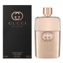 Gucci Beauty presenterar en ny vision för Gucci Guilty Eau de Toilette pour Femme, en nytolkning på flaskan av den populära doften för att matcha sina partners inom herrdoftskategorin. Parfymerna förenas nu i en gemensam design som speglar kvinnors och mäns lika värde i jakten på frihet när det gäller självförverkligande och kärlek. Nya koder skapas i den populära Gucci Guilty-flaskan i metall och transparent glas, som i denna utgåva dessutom har fått en vacker skrud i metallicskimrande roséguld. Djupa ackord av ambra ackompanjeras av ljuvliga noter av mandarin, syrén och patchouli.