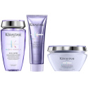 Detta schampo från Kérastase är berikat med hyaluronsyra och har en lätt formula som är idealisk för blekt, avfärgat, grått eller faux,blonde hår. Den skonsamma produkten rengör håret från föroreningar, avlägsnar ämnen som gör håret matt samt lugnar och återfuktar från rot till topp. Det blonda håret får en lätt känsla och härlig lyster och blir blankt ända ut i topparna. Håret får återfuktning och förbereds för behandling 2. Balsam - Kérastase Blond Absolu Cicaflash Conditioner (250ml)Denna lätt lavendelfärgade gel med opalglans har den återuppbyggande effekten hos en inpackning och den lätta finishen hos ett balsam. Den återuppbygger intensivt hår som har blivit känsligt och ger hårfibern återfuktning på djupet. Det känsliga, blekta håret blir omedelbart slätt och mjukt och får ny styrka. Cicaflash från Kérastase är idealiskt för alla toner av faux, blonde hår och återuppbygger hårfibern så att kluvna hårtoppar och slitage motverkas. Håret återfuktas, blir lätt och får strålande lyster 3. Mask - Kerastase Blond Absolu Masque Cicaextreme Hair Mask (200ml)Denna hårmasque från Kérastase stärker hårfiberns struktur för att återuppbygga håret efter en uppljusning eller blekning. Den ger intensiv återfuktning. Hyaluronsyra-duo och Edelweissolja förstärker hårfiberns motståndskraft för att motverka kluvna toppar och att håret går av. Håret blir därmed mer lättskött och enkelt att reda ut. Masque Cicaextreme passar för överbehandlat och mycket känsligt blont hår. Den minskar hårets porositet efter uppljusning eller blekning och förseglar hårfibern för en slät yta. Håret blir starkare, jämnare och glansigare, från längder till toppar.
