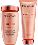 Kerastase Discipline Bain Fluidealiste (250ml) Kérastases Discipline är en sofistikerad vårdande hårvårdserie som ger dig mjukt och smidigt hår. Bain Fluidealiste är ett vårdande schampo som ger håret kontroll och disciplin. Du får genast mjukt och smidigt hår, samt så förkortar du föningstiden och får ett 72 timmars anti-friss och fuktskydd. Serien innehåller Morpho-Keratin Complex som består av Pro-Kreatin. Formulan är idealiskt för färgat och känsligt hår. Kerastase Discipline Fondant Fluidealiste (200ml) Discipline Fondant Fluidealiste gör håret lätthanterligt och ger rörelse i håret. Kérastases Discipline serien innehåller Morpho-Keratin Complex som består av Pro-Kreatin. Du får en jämn och fin yta samt ett 72 timmars anti-friss och fuktskydd. Produktserie: Kerastase Discipline