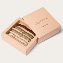 Lenoites Mulberry Silk Skinny Scrunchies har en vikt om 22 momme - vilket är måttet för silkes kvalitet och tjocklek. Ett smycke samtidigt som den håller håret på plats utan att skava på det yttersta skiktet vilket främjar friskt hår. Genom att använda scrunchies i siden motverkar det att hårstrån bryts eller att du får avtryck i håret efter hårsnoddar. - Information