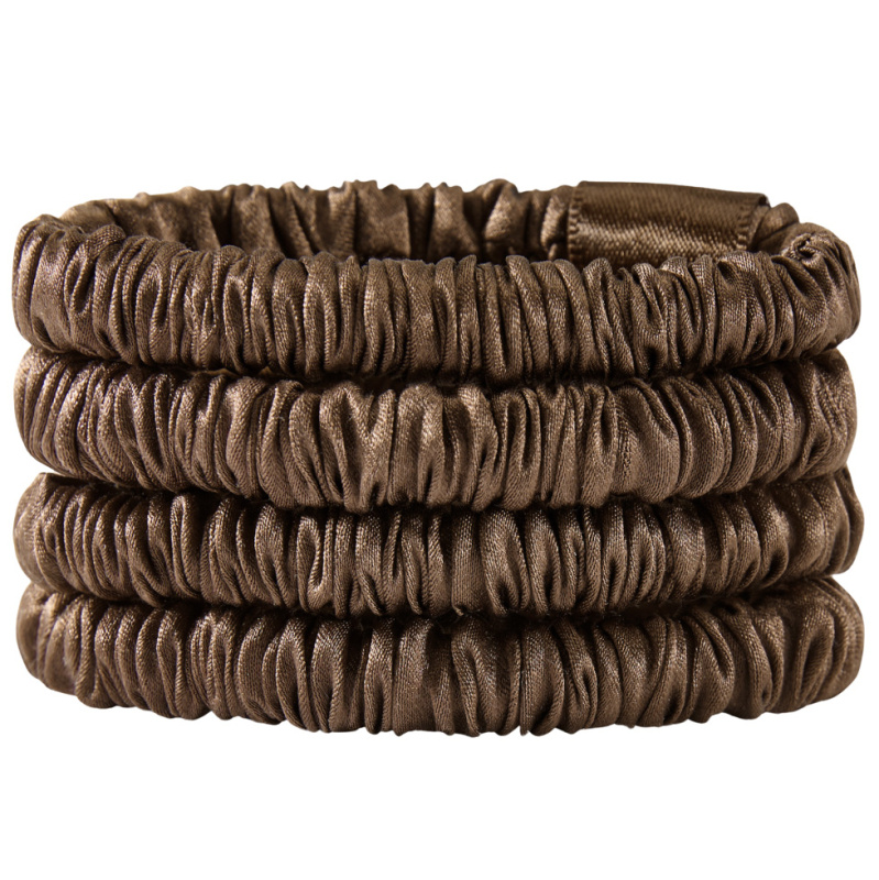 Stilren och tidlös scrunchie tillverkade i 100% mullbärssilke har en vikt om 22 momme - vilket är måttet för silkes kvalitet och tjocklek. Ett smycke samtidigt som den håller håret på plats utan att skava på det yttersta skiktet vilket främjar friskt hår.