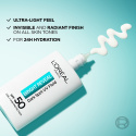 L’Oréal Paris Bright Reveal Dark Spot UV Fluid SPF50 är en lättflytande och fuktgivande dagkräm som förebygger solorsakade ålderstecken och skyddar mot uppkomsten av mörka fläckar. Kosmetokliniskt dokumenterad effekt: Efter 1 användning känns huden återfuktad och ser omedelbart mer strålande ut. Efter 1 månad är mörka fläckar synligt reducerade och huden är mer jämn, och efter 12 veckor är mörka fläckar reducerade med 53%*. *Kosmetoklinisk test, 12 veckor, 76 personer. Storlek: 50 ml