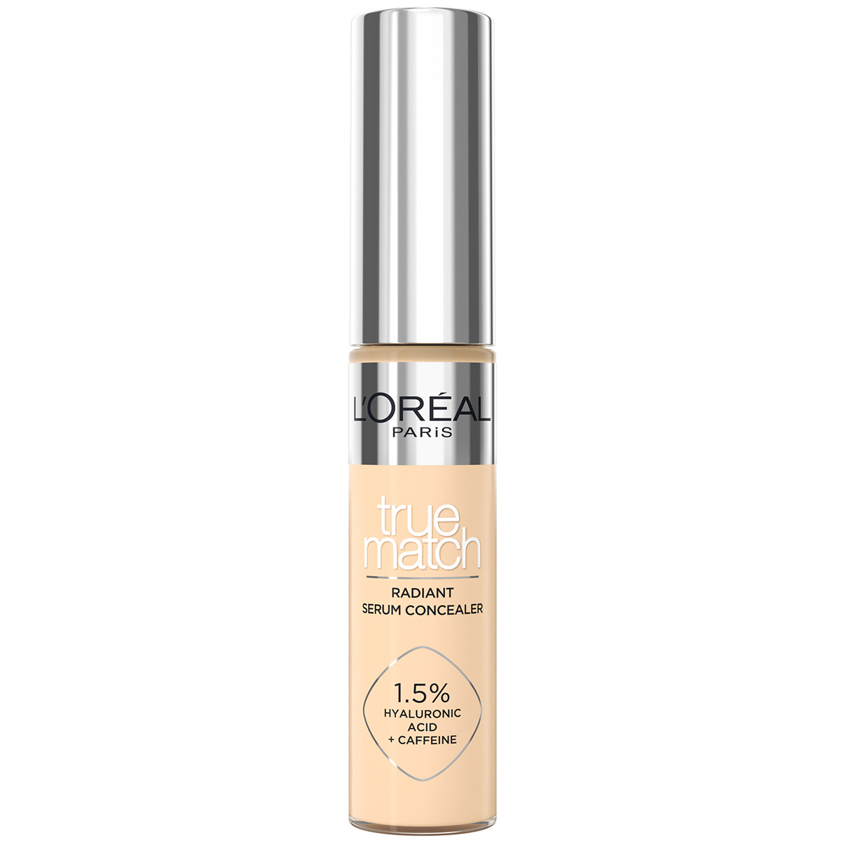L'Oréal Paris True Match Radiant Serum Concealer har medium-hög täckningsgrad, neutraliserar mörka ringar och minskar synligheten av påsar under ögonen.