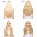 Spraya rikligt i handdukstorkat hår. När du fönar håret, lyft upp rötterna medan du fönar eller använd rullar för extra volym. Styla håret med värmeverktyg för att få vågor och lockar.