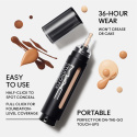 Klicka, tryck, kör! Dölj och korrigera - här, där eller överallt! Den här två-i-ett concealearn och foundationen är vattenfast, svett- och fuktresistent och bärs bekvämt i 36 timmar för bästa foundationtäckning. Den kamouflerar även ringar under ögonen, döljer rodnad och blemmor och jämnar ut hudtonen. Formulan är berikad med E-vitamin, hyaluronsyra och koffein och appliceras, byggs upp och blandas lätt. Finns i 33 flexibla, medium-till-full-byggbara nyanser med en naturlig matt finish. Denna lätta, återfuktande penna är gjord för att användas överallt och passar alla.