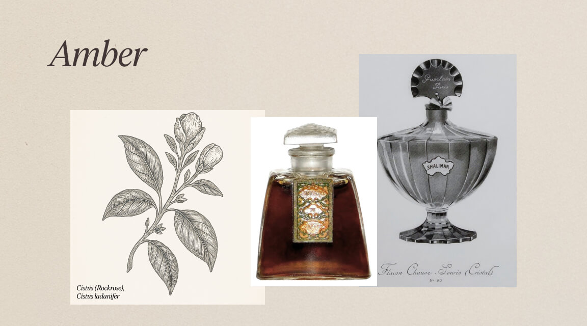 Amberparfymer uppstod i början av 1900-talet med klassiker som Guerlains Shalimar och Cotys Emeraude. De bygger på varma, kryddiga och söta material som vanilj, labdanum och benzoin. Namnet syftar förvirrande nog inte på bärnsten, utan snarare på den gyllene värmen i dofternas karaktär. Begreppet “orientalisk” används ibland, men är idag föråldrat och kolonialt präglat.