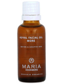 Royal Facial Oil More med eterisk olja av rosenblad är en utslätande och fuktbevarande ansiktsolja som ökar cellernas syreupptagning, elasticitet och motståndskraft. Den passar en mogen och känslig hud, och är även bra för hud med rosacea och ytliga blodkärl. Oljan stärker kollagenet och motverkar UV-skador.