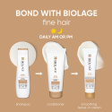 Bond Therapy Intensive Shampoo från Biolage ger näring och förstärker hårets bindningarna. Det låga pH-värdet i formulan ger näring åt överbehandlat hår. Det minskar brustna hårstrån och stärker samt mjukgör håret, vilket gör det enklare att styla. Formula med kokosolja för att göra håret mjukt och citronsyra för att förbättra hårets styrka och motståndskraft.