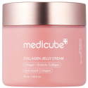 Medicube Collagen Jelly Cream är en multifunktionell gelkräm utvecklad för att hantera flera hudvårdsutmaningar samtidigt. Denna lätta gelkräm är formulerad med flera typer av kollagen som är utvalda för att effektivt kunna absorberas av huden. Kollagen fungerar som en kraftfull återfuktare som kan minska hudens uttorkning, göra den mer elastisk och smidig samt fylla ut fina linjer med fukt. Krämen innehåller blåbärs- och tomatextrakt samt niacinamid och adenosin som alla samverkar för att förebygga stora porer så att de ser mindre tilltäppta och renare ut. Dessa ingredienser kan dessutom minska pigmentförändringar och ge huden ett jämnare utseende. Krämen är även berikad med laxrosextrakt och natrium-DNA, som består av lågmolekylära DNA-molekyler. Dessa kan stimulera hudens cellförnyelse, minska inflammation och främja kollagenproduktionen, vilket kan revitalisera huden och förbättra dess allmänna utseende. Den rosa färgen kommer från naturliga växtextrakt. Krämen absorberas snabbt, och vid regelbunden användning kan din hud kännas slätare och mer enhetlig.