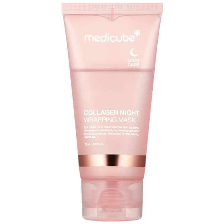 Medicube Collagen Night Wrapping Mask är en nattmask som arbetar för att förnya och reparera huden medan du sover. Masken är rik på återfuktande ingredienser som kan bidra till en friskare och mer strålande hud. När masken appliceras på kvällen bildar den en skyddande hinna på hudens yta. Denna barriär förhindrar fuktförlust genom att täta in fukten i huden över natten. Samtidigt tränger de aktiva ingredienserna djupt in i huden där de kan stimulera hudens naturliga cellförnyelse och kollagenproduktion. Masken är berikad med glycerin, ceramider och tokoferol (vitamin E) som på flera sätt samverkar för att stärka och skydda huden. Glycerin tillför och binder fukt, ceramider skyddar hudens barriär och tätar in fukt, medan E-vitamin skyddar mot miljöskador och främjar hudens naturliga regenerering. Detta kan bidra till en friskare och mer motståndskraftig hud. Vid kontinuerlig användning av masken kan huden se slätare, fastare och mer återfuktad ut, och du kan se en förbättring av fina linjer, rynkor och hudens övergripande utseende.