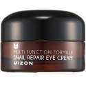 Med sin höga koncentration av snigelfiltrat (80%!) är Mizons Snail Repair Eye Cream den perfekta formulan för att stärka den känsliga och tunna huden runt ögonen. Snigelsekret är en beprövad och populär antiaging-ingrediens i Korea för sin förmåga att reparera huden och förbättra dess textur och motståndskraft. Snigelsekret sätter igång cellförnyelsen och stimulera hudens självläkningsprocess vilket gör att den motverkar uppkomsten av fina linjer då huden blir mer mjukare och spänstigare samt förbättrar den utseendet på befintliga linjer. Snigelsekret verkar även djupt återfuktande eftersom det är rikt på elastin och naturlig glykosyra. Sekretet fungerar som en skyddande barriär för huden som motverkar uttorkning och extern miljöpåverkan. Det verkar även antiinflammatoriskt vilket gör den till en idealisk ingrediens för känslig hud. Innehåller även EGF och niacinamid som är effektiva anti-aging ingredienser och klarnar upp mörka ringar under ögonen samt reducerar pigmentfläckar. Mandelextrakt, bivax och olja från ängskrasser mjukgör och återfuktar.