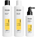Nioxin System 1 Trial Kit är ett hårvårdssystem för naturligt hår med lätt uttunning. Denna unika uppsättning med tre professionella hårvårdsprodukter är särskilt framtagen som en hårförtjockande behandling som fräschar upp hårbotten och ger ett hår som ser fylligare ut. Nioxin System 1-rutinen fräschar upp hårbotten, minskar håravfall på grund av avbrutna hårstrån, stärker håret och ger en hälsosam glans. Nioxin Cleanser Shampoo avlägsnar smuts, talg och andra miljörester från hårbotten och hår. Nioxin Scalp Therapy Conditioner är ett lättviktigt balsam som hjälper till att ge håret motståndskraft samtidigt som det återfuktar håret från rot till topp. Nioxin Scalp & Hair Treatment fräschar upp hårbotten och hjälper till att ge ett hår som ser tjockare ut genom att öka fylligheten i varje hårstrå. Kitet har kliniskt bevisats minska håravfall på grund av avbrutna hårstrån med upp till 91 %**.