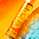Denna sololja med SPF30 skyddar ansikte och kropp mot solens strålar samtidigt som den bidrar till att respektera den marina miljön. Det patenterade filtreringskomplexet ger ett brett spektrum av UVA/UVB-skydd och förhindrar att huden åldras i förtid. Den oemotståndliga konsistensen, som absorberas snabbt utan att lämna en fet hinna, ger huden näring och förstärker solbrännan med en vacker satinfinish. Huden omsluts av en suggestiv semesterdoft med noter av söt apelsin, tiaréblomma och vanilj. En sann inbjudan till att njuta av sommarkänslan.