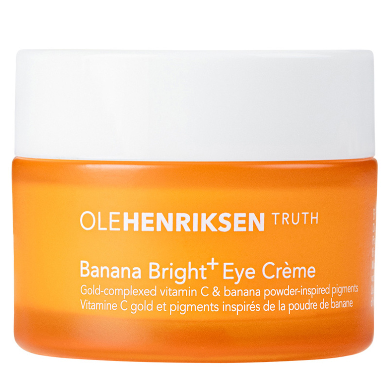 Banana Bright+ Vitamin C Eye Crème för mörka ringar. En C-vitaminberikad ögonkräm med guld som synbart förbättrar mörka ringar, minskar synligheten av fina linjer och rynkor och ger omedelbar lyster under ögonen. Denna ultrakrämiga, parfymfria ögonkräm är kliniskt framtagen med ett trippelt C-vitamin-komplex inkapslat i äkta guld för förbättrad leverans, vilket synbart förbättrar mörka ringar och envisa kråksparkar över tid. Den är superladdad med antioxidantrik hardy orange-extrakt och lystergivande pigment inspirerade av banana powder för att omedelbart återfukta och ljusa upp. Den veckresistenta, färgkorrigerande formulan kan bäras ensam eller smidigt under concealer.