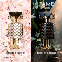 FAME Parfum är en upplyftande och sensuell blommig doft som representerar den moderna femininitetens många aspekter och den moderna kvinnans förföriska kraft. Den intensiva doften hyllar spänningen i nattens fascinerande och oväntade upplevelser när strålande jasminblommor kombineras med krämig rökelse och mysk. Detta skapar en intensiv och förförisk fasett av kvinnlighet jämfört med den klassiska FAME Eau de Parfum. Parfymen är resultatet av sublimt hantverk och lyxiga doftnoter som är hållbart framställda. Ingredienserna är veganska, hållbara och 90 % av naturligt ursprung i denna sensuella Rabanne-parfym.