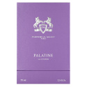 En doft som förkroppsligar den excentriska och okonventionella sidan av Château de Marly genom inte bara dess djärva ingredienser, utan också dess djärva men ändå fängslande violetta flaska. Palatine, ett namn som resonerar med prinsessan Palatine, en frispråkig och frisinnad prinsessa som ofta bodde på slottet. Denna stärkande men sofistikerade Eau de Parfum kretsar kring en modern blombukett förstärkt med friska, fruktiga och pudriga noter. En öppning av mandarin, bergamott och päron leder till ett djärvt, modernt violblad. För en sammetslen känsla avslutas doften med mysk och krämig sandelträ. Palatine uppmuntrar till självförtroende och ingjuter en känsla av självsäkerhet och frihet.