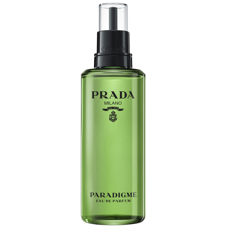 Våra mästerparfymörer Marie Salamagne, Bruno Jovanovic och Nicolas Bonneville bestämde sig för att öppna ett nytt olfaktoriskt paradigm genom att vända den traditionella doftkompositionsarkitekturen upp och ner och bygga upp den från botten och upp i en inverterad pyramid; ett symboliskt eko av den ikoniska Prada-triangeln. Resultatet är en avantgardistisk, men ändå mycket sofistikerad ambra- och träig signaturdoft, som pendlar mellan omslutande värme och uppfriskande fräschör. Paradigme öppnar med den varma sensualiteten av ambrat trä komponerat av Peru-balsam, benzoinharts och kraftfullt guajakträ. I hjärtat, en ikonisk grön Bourbon-geranium, denna gång återuppfunnen med blommiga rosfacetter, som vecklar ut sig över en smältande calabrisk bergamottkärna och luftiga mysker, som lyfter hela kompositionen. ""Besattheten med denna komposition var djärvhet, djärvheten att utmana klassicismen och föreslå en ny modell, mer sensuell och magnetisk.""
