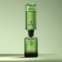 Paradigme-flakongen väcker omedelbart nyfikenhet. En arkitektonisk silhuett av radikal elegans mjukgjord av rundade kanter och ett avantgardistiskt uttalande genom den taktila, snedställda Prada-triangeln, husets ikoniska signatur. Flakongen är lackerad i en intensiv och förförisk gradering från svart till grönt, husets ikoniska färg. Den yttre asken är präglad för att spegla märkets signatur Saffiano-läder med korsmönster, signerad med en silverfärgad Prada-logotyp.