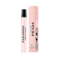 FLASKAN Precis som den ursprungliga signaturen är den uppdaterade flaskan till Paradoxe Virtual Flowers ett uttryck för Pradas känsla för förnyelse och förkärlek för kontraster. Den nya flaskan är minimalistisk och fin vid första anblick och står sedan ut gentemot traditionella parfymflaskor med sin inspiration hämtad från den ursprungliga ikoniska triangelformade Prada-logotypen som är designad för att vila på sidan. Prada-logotypen står i kontrast till doftens fräscha ljusrosa färg. Flaskan pryds av texten ”Virtual Flower” på den övre fasningen.