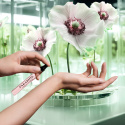 ÖKAD KREATIVITET För att öppna upp för ett nytt perspektiv på blommor valde våra mästerparfymörer Nadège Le Garlantezec, Shyamala Maisondieu och Antoine Maisondieu en av de mest sofistikerade blommorna inom parfymvärlden och gav den ett helt nytt uttryck: Jasmin. De utnyttjade kraften hos artificiell intelligens för att skapa ett unikt Prada-ackord som fångar doften av blomman i naturen.