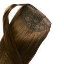 Hästsvans i äkta hår som du enkelt fäster och tar ur med hjälp av praktiskt kardborrefäste och en liten gömd hårkam. Allt på mindre än 1 minut! Perfekt för en fylligare hästsvans, hårknut eller fläta. Det äkta håret kan dessutom klippas, stylas och formas med värme för att passa både din look och längd