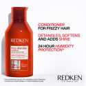 Redken Frizz Dismiss balsam är ett anti-frizz-balsam som tämjer frissigt hår, förbättrar medgörligheten och framhäver hårets glans. Balsamet innehåller Redkens Smoothing Complex och babassuolja, som är hållbart producerad. Det reder ut håret och skyddar håret mot frizz, samtidigt som den ger mjukhet och glans.