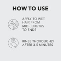 1. Efter schamponering, applicera i vått hår från längderna till topparna.