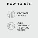 Användning spraya i torrt hår för att fixera vilken stil som helst. platta ner eller bygg upp. passar bäst i mellan till tunga hår.